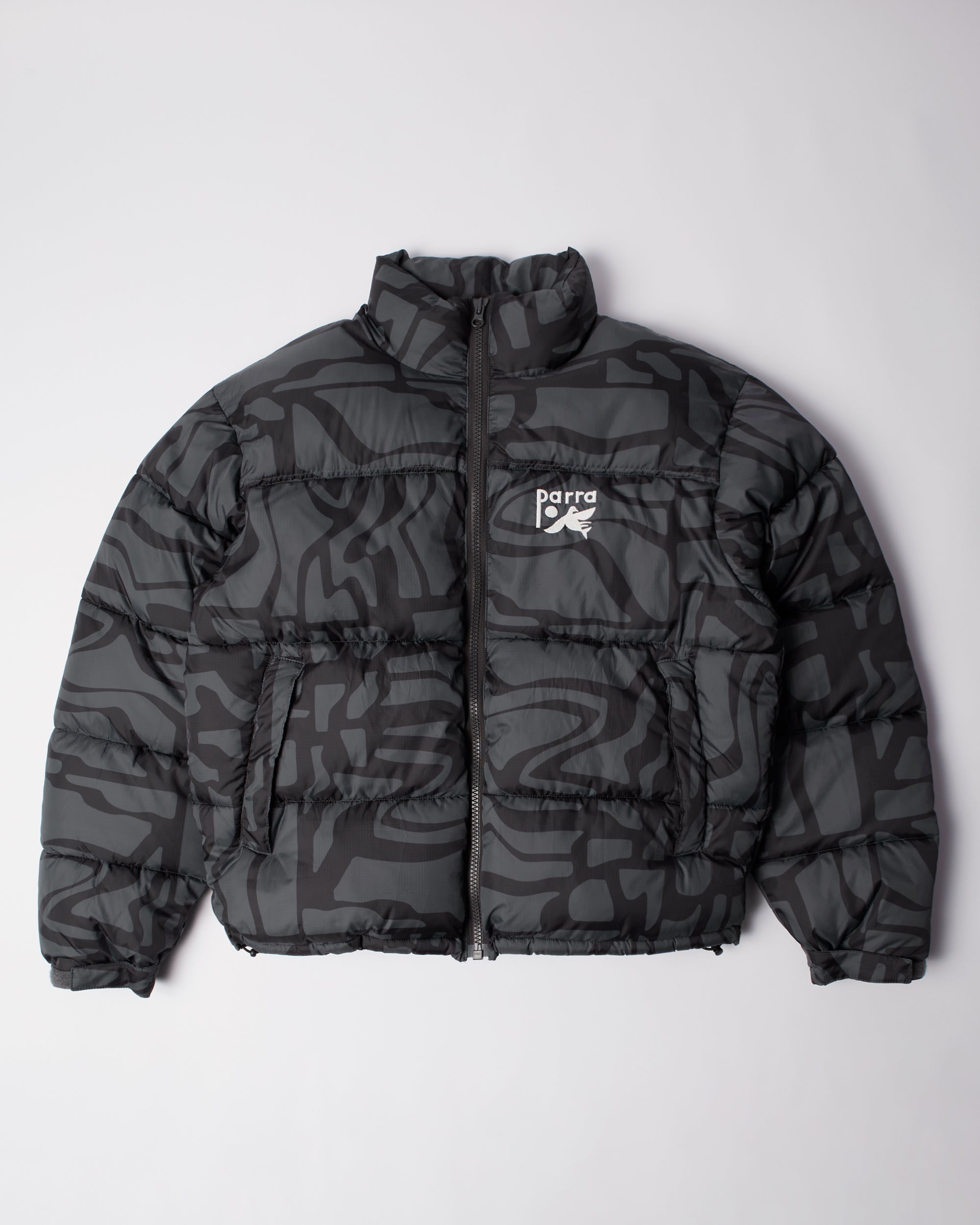 Big puffer jacket with the Broken FTP artwork printed all over, and a Parra logo embroidery on the chest. Boxy fit.