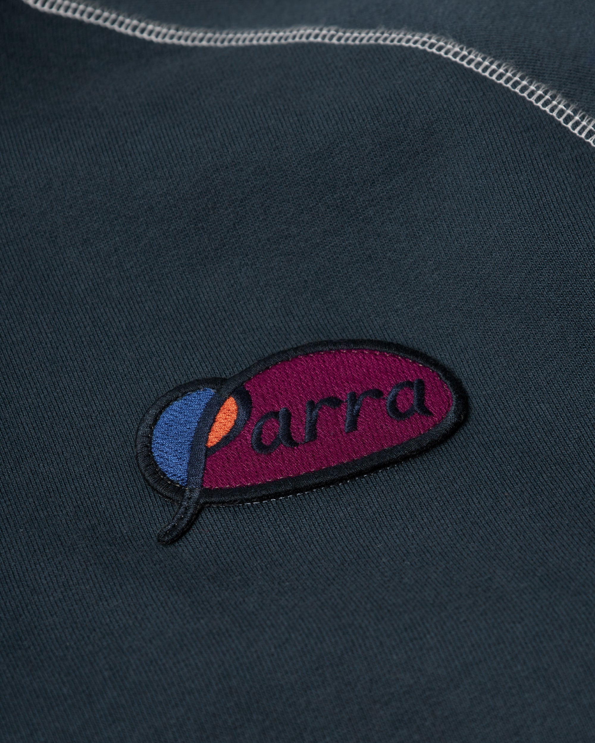 Hooded sweatshirt with the Circled script logo as an embroidery at chest. This hoodie has contrasting overlock stitching.