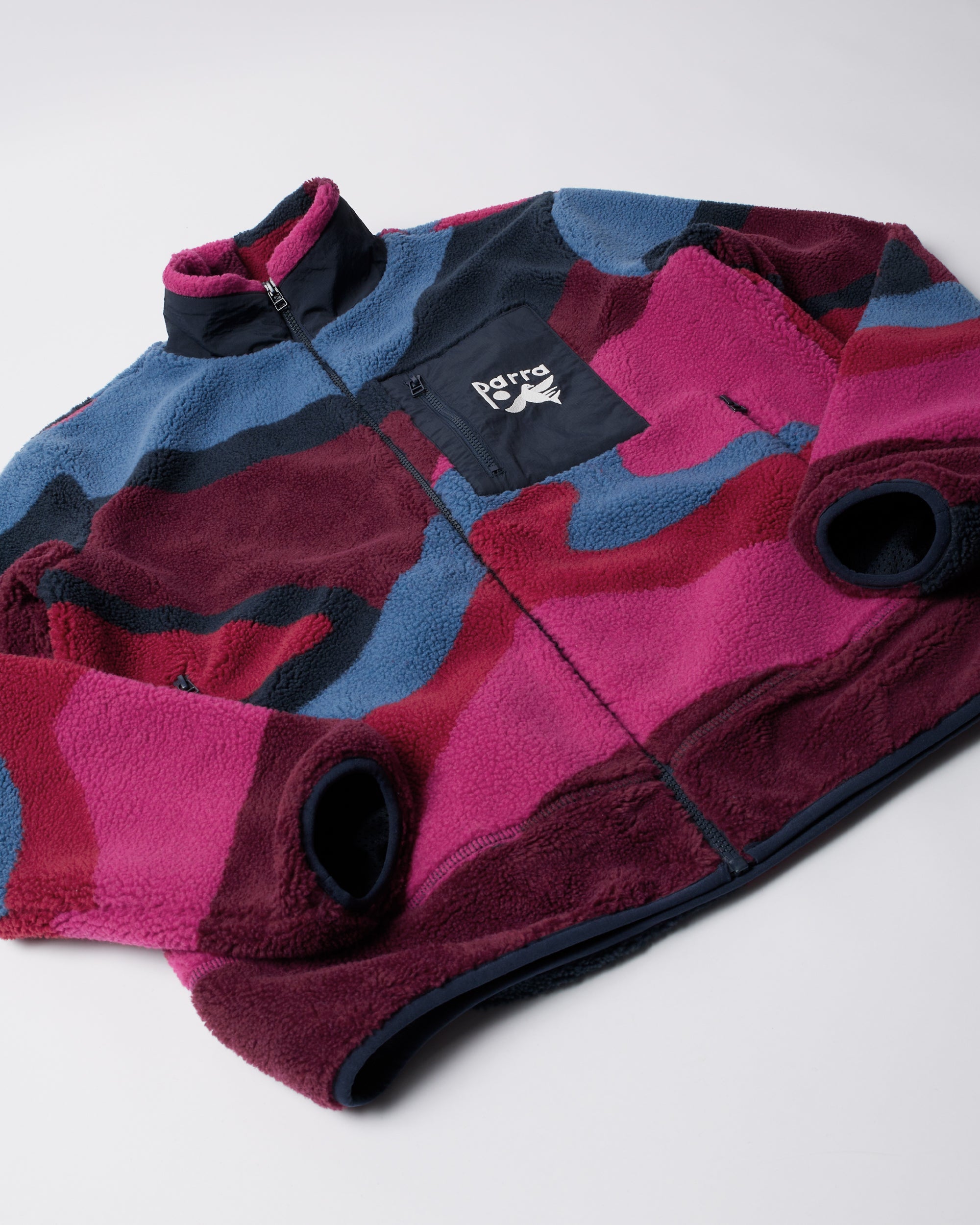 Fleece jacket with a the Full ftp booster artwork all over. Has a pocket on the chest with and Parra logo embroidery on it.