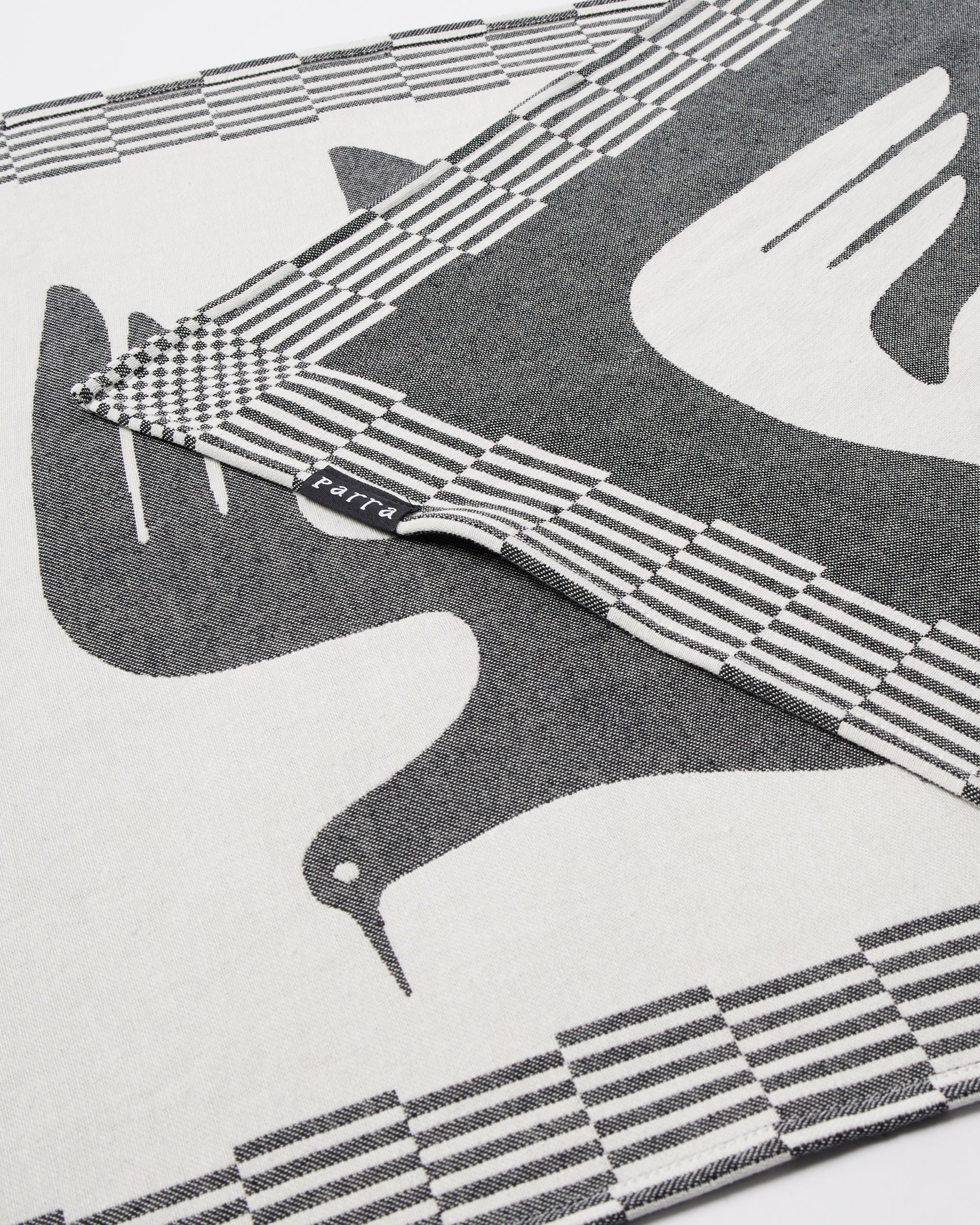 Two pack of kitchen towels. Jacquard knitted with Infinite kitchen bird artwork.