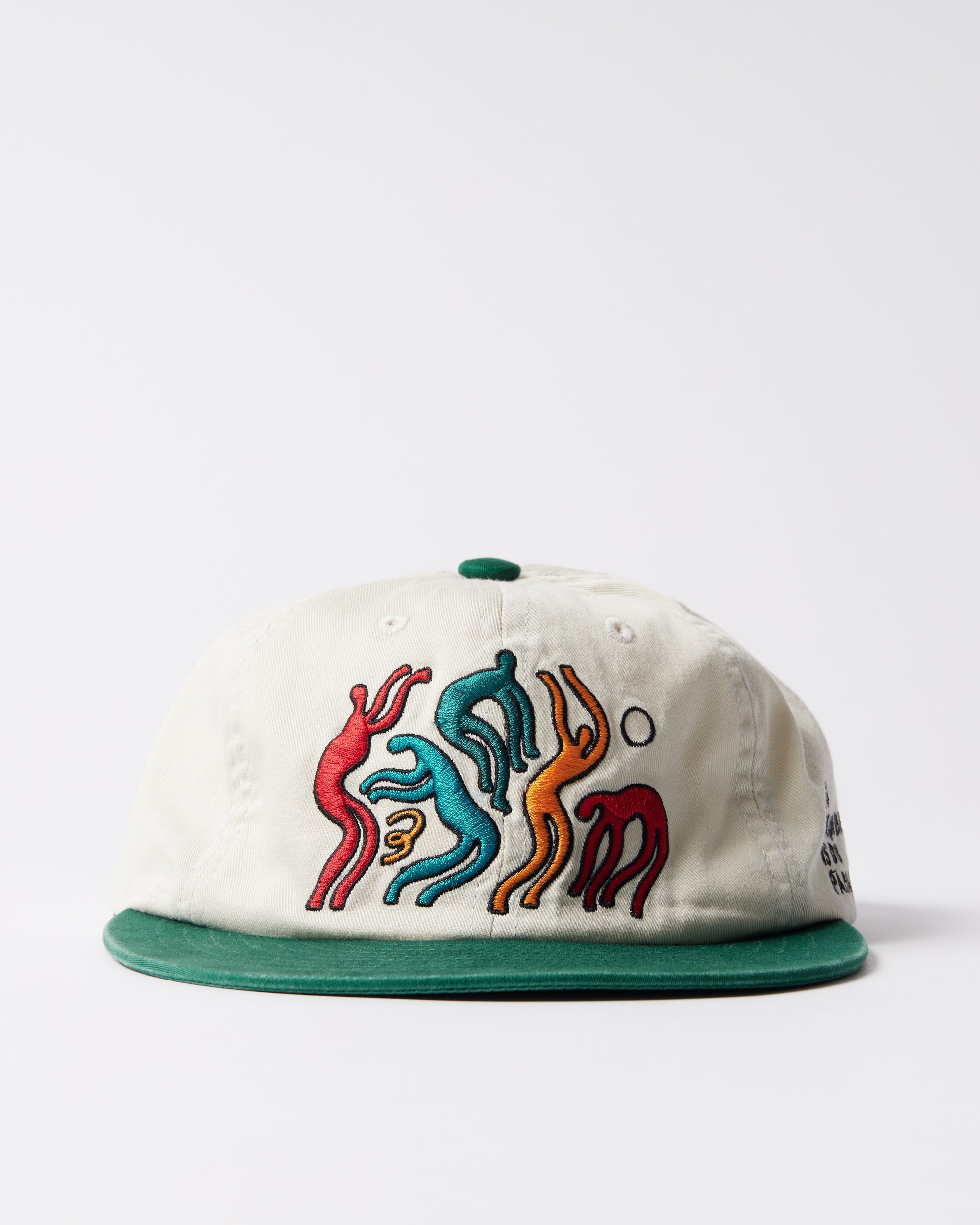 A 6 panel hat construction, non reinforced with an embroidery of the Le chambre artwork on front and side. Snapback closure.