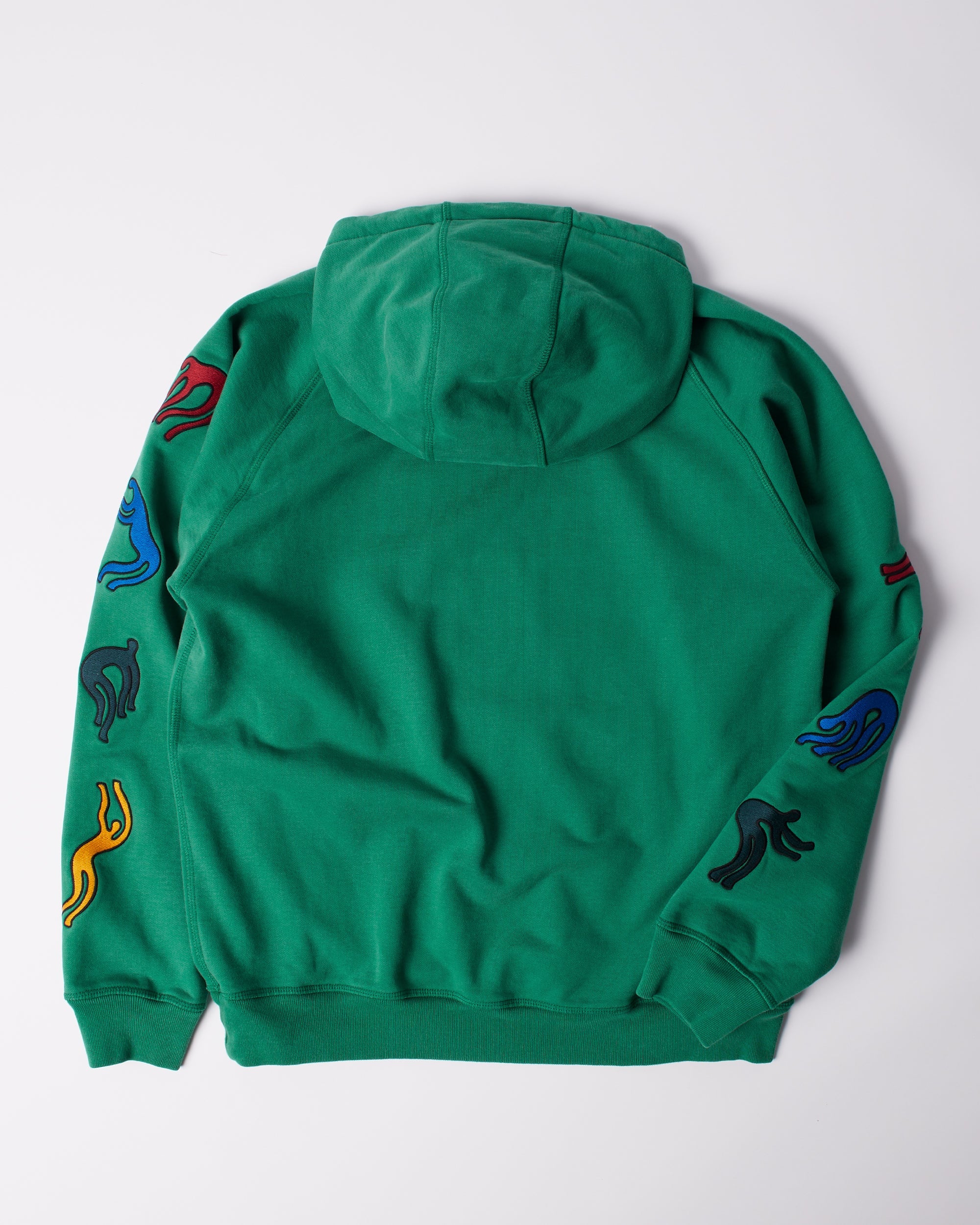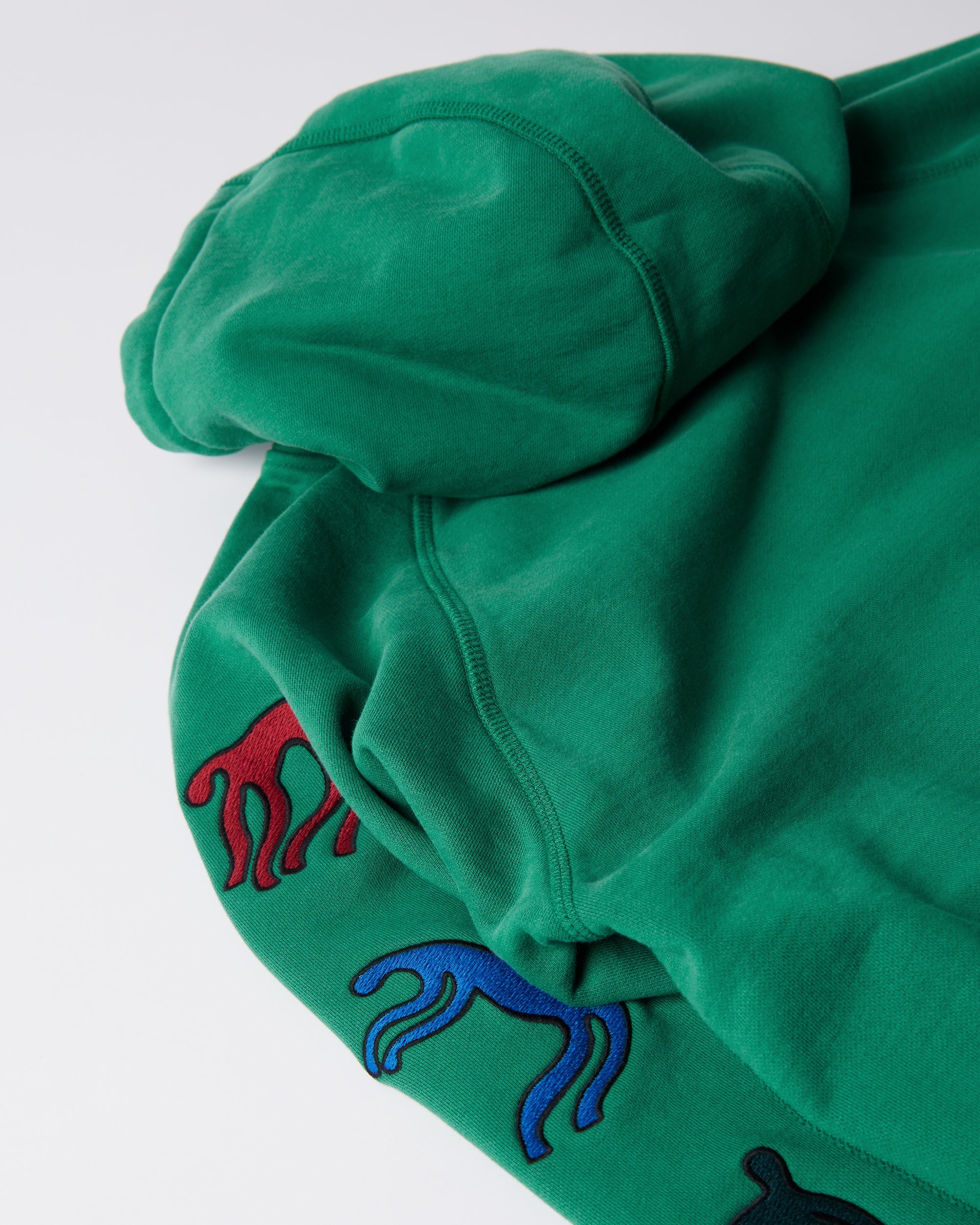 Hooded sweatshirt with La chambre nuit artwork embroidered at chest and sleeves. Extra heavy 100% cotton.