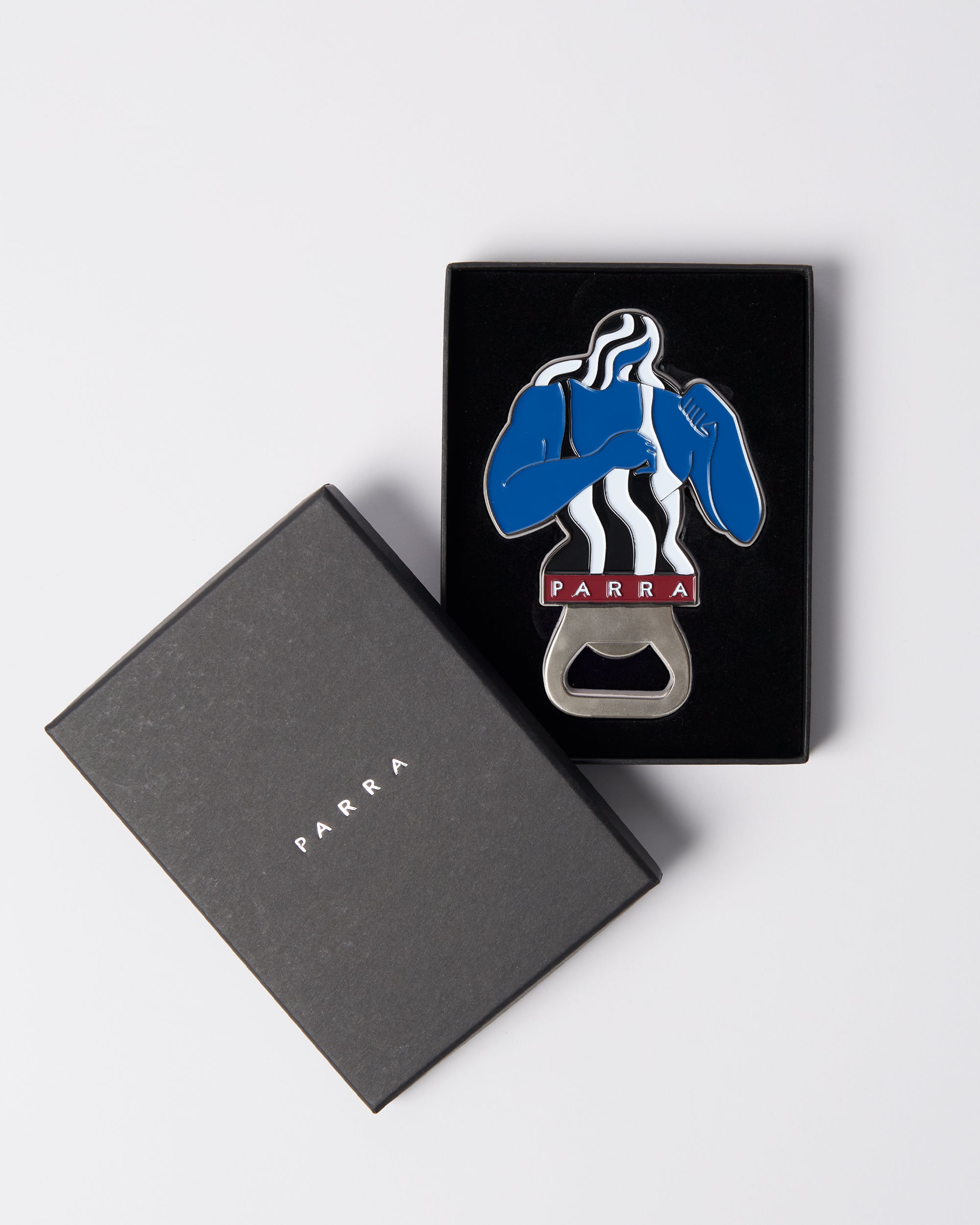 Enamel metal opener made from the Self defense artwork. Comes in a luxury by Parra package.