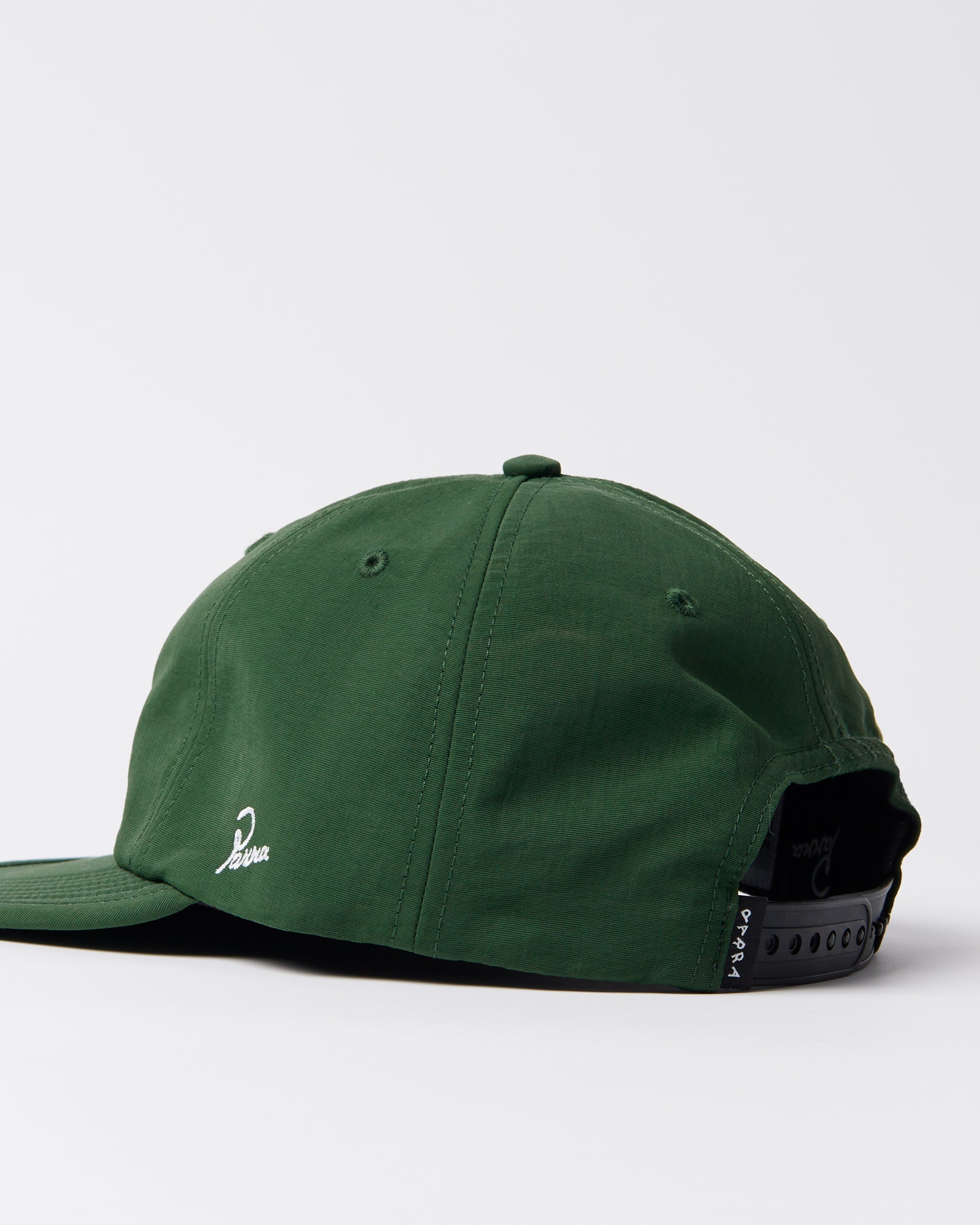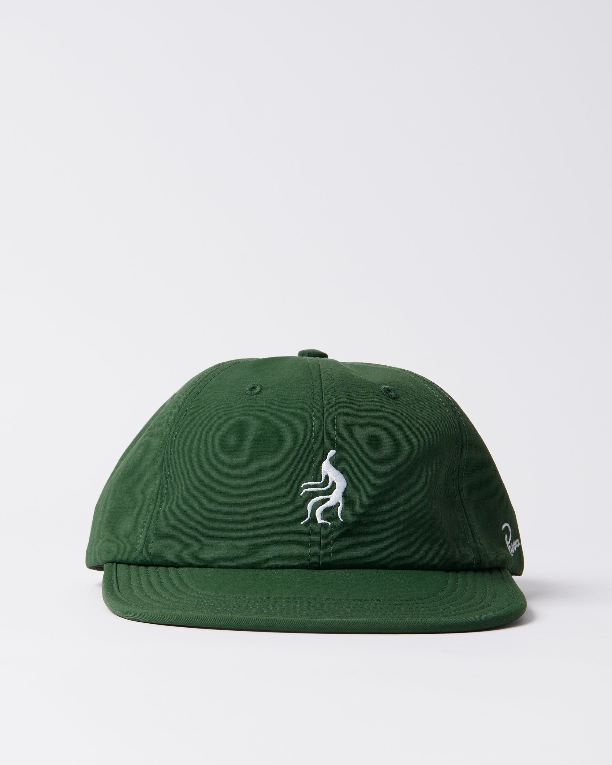 A 6 panel nylon hat, non reinforced and a flexfoam visor. Has an embroidery of the Blob on front. Snapback closure.