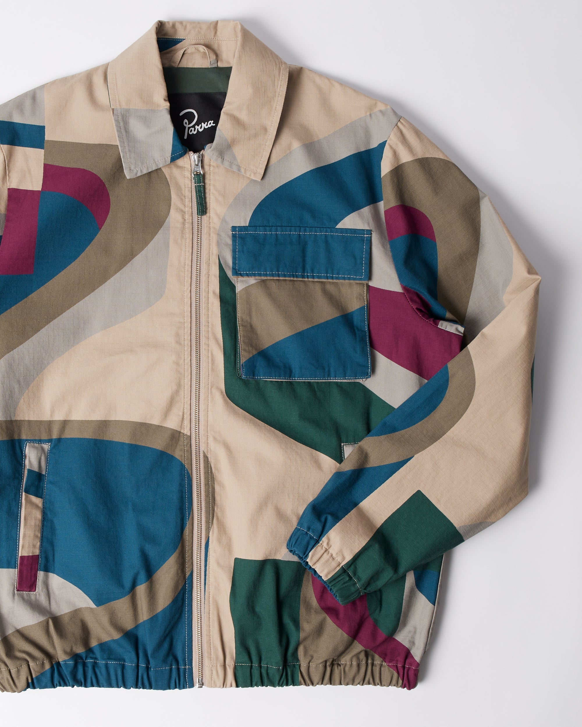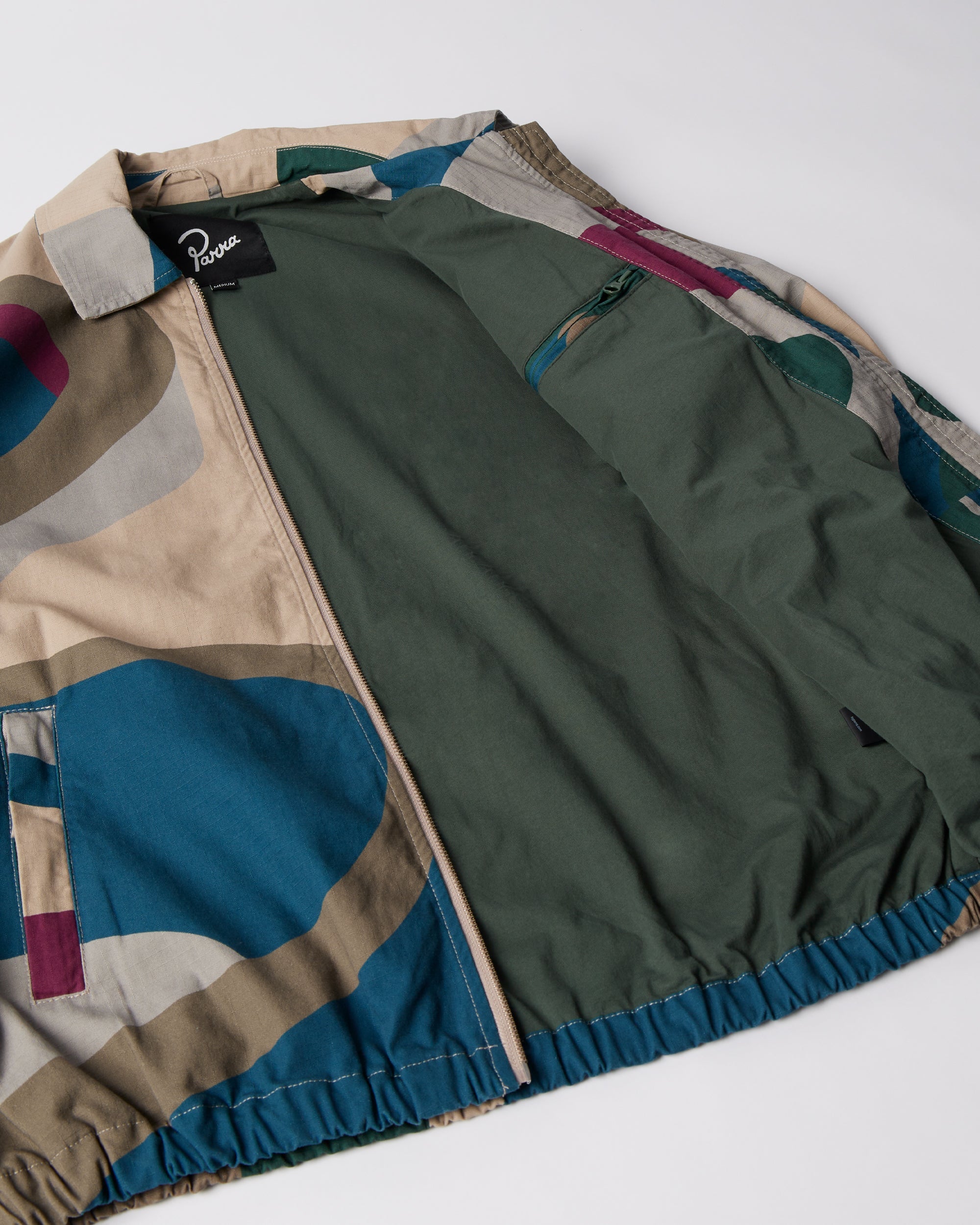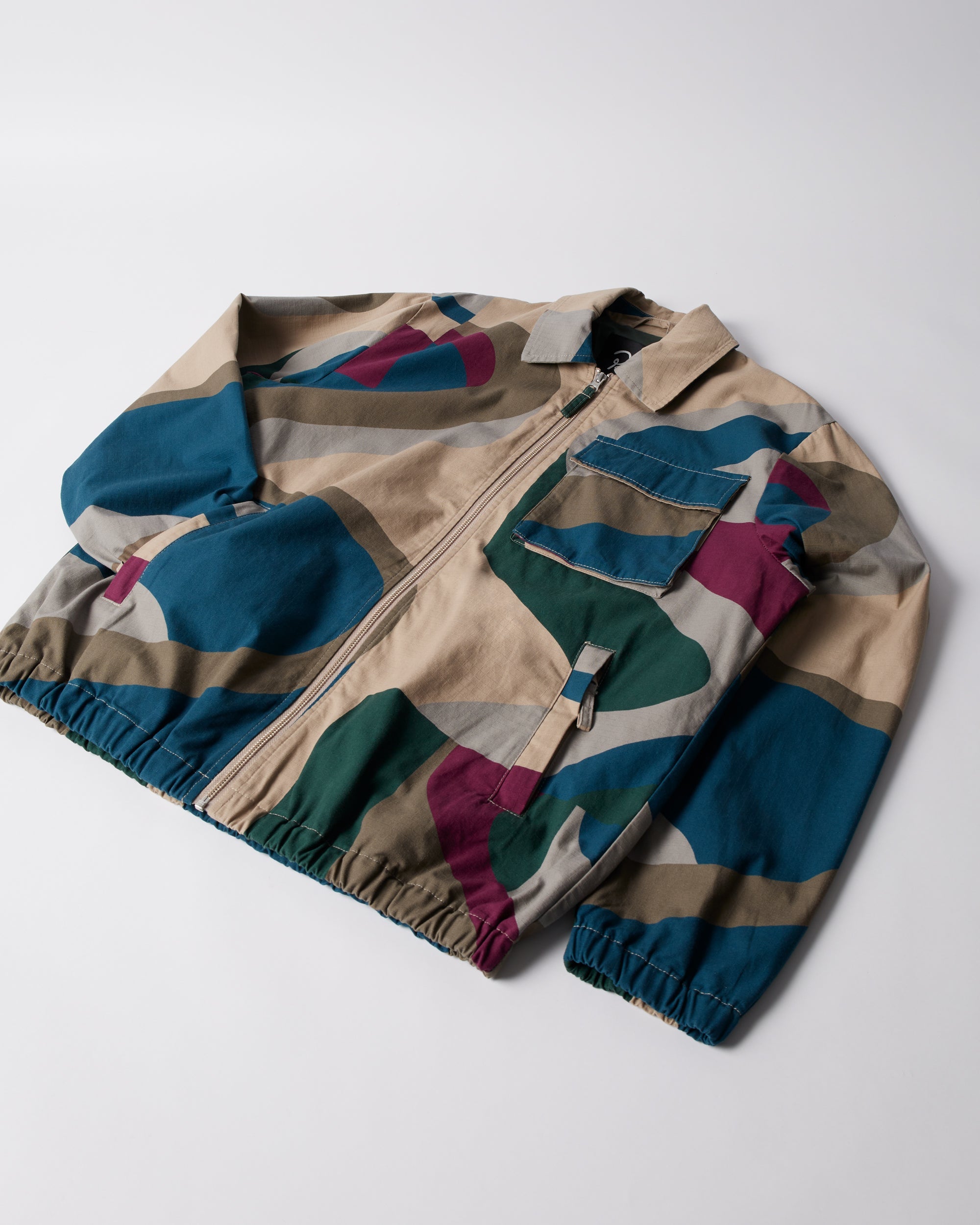 Placement print all over on a classic zip jacket. Made from a 100 % cotton ripstop and cotton jersey lining.