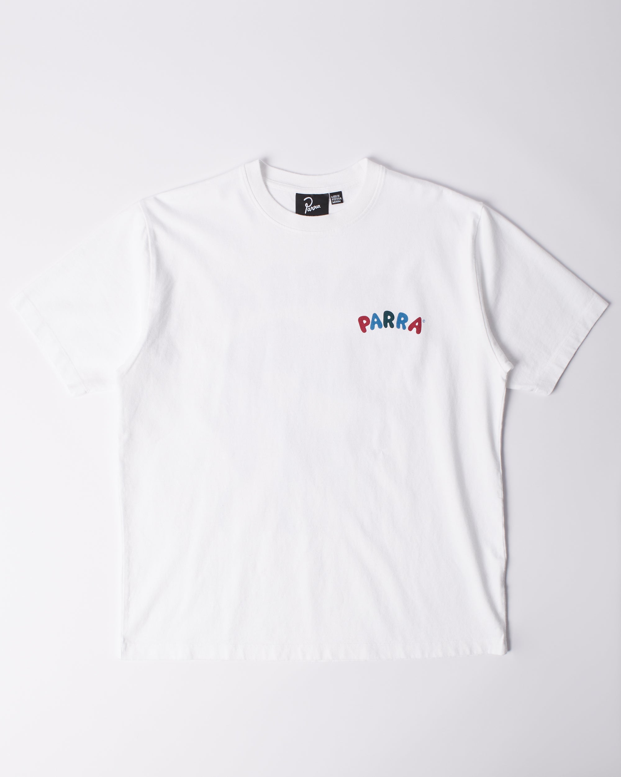 This damn chair artwork as a waterbased screenprint at the back and Parra printed on the chest. All Parra t-shirts are a boxy custom fit.